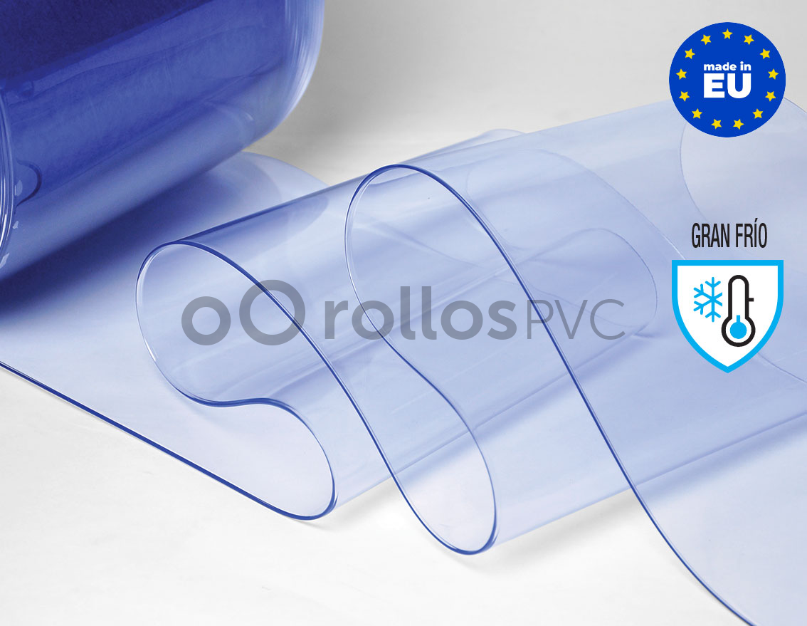 Rollo Lama PVC Flexible (50 metros lineales) 100x2mm Gran Frío Transparente Azulado
